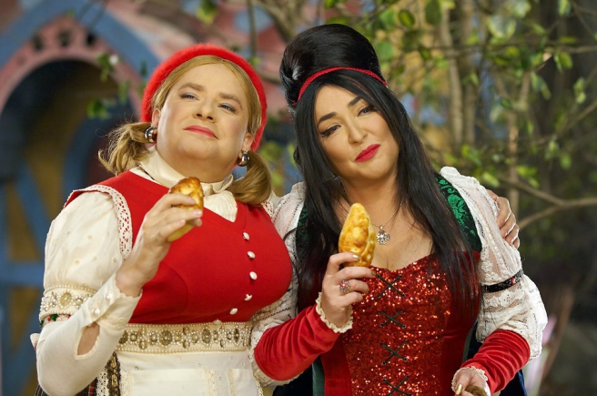 Нужно отметить, что обе роли очень подходят артистам. Данилко очень идут светлые косички и красная шапочка. Лолита же бесподобна в своем образе роковой женщины.